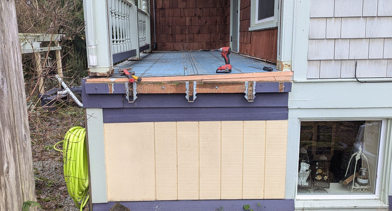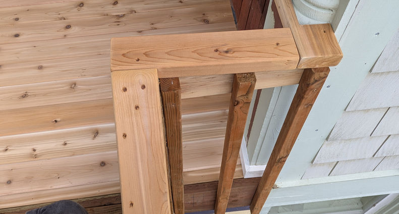 This house built in 1925 needed a little bit of TLC. Between the unstable slimy stairs and the water damaged floor boards, these customers could not even safely use their front door. This patio was a little tricky considering the patio is above a room of the house and that room needed to be water tight. We installed a moisture barrier and then choose tongue and groove Cedar for the decking material. The costumers loved the look and now they can safely enter their home.